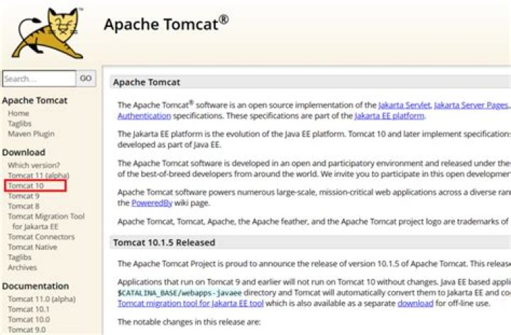 - Go to the Tomcat Web page.