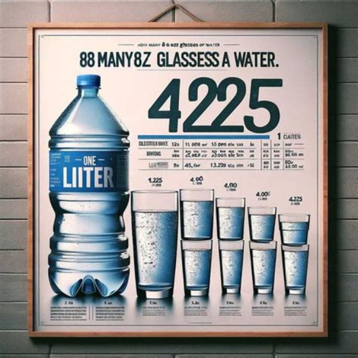 One liter of water is about 33.8 ounces. A typical glass of water holds about 8 ounces. Therefore, a one- liter bottle contains about four 8-ounce glasses of water, or 12 glasses of water for three liters, plus a little allowance for spillage from each liter.