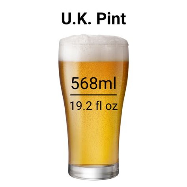 This is because a pint in the United Kingdom is bigger than a pint in the United States. The UK pint is 20 fluid ounces, while the US pint fills up 16 fl oz. The British Imperial pint is 568.261 ml (20 fluid ounces), while the US Customary pint is 473.176 ml (16 fl oz).