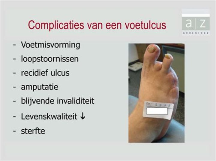 Symptomen Diabetische voet Daardoor stroomt het bloed minder goed door uw benen en voeten. Ook hebt u vaak minder gevoel in uw voeten. Als u minder gevoel hebt in uw voeten, merkt u niet snel dat u een wondje hebt. Zo’n wondje kan gaan ontsteken en een zweer worden, ook wel ‘ulcus’ genoemd.