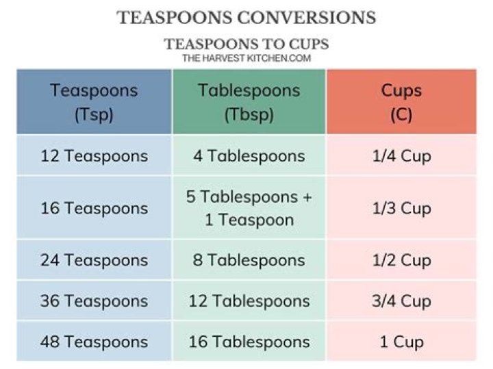 | 1 tablespoon (tbsp) = | 3 teaspoons (tsp) |