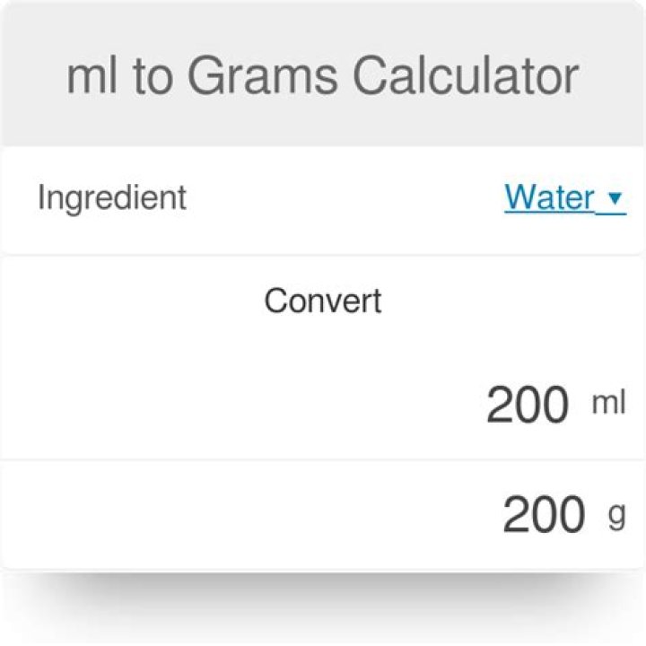 | 4 mL = 4 grams | 200 mL = 200 grams |