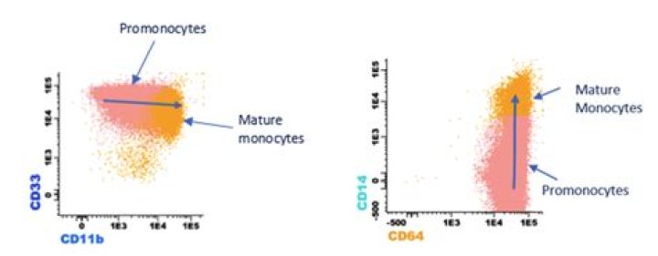 Although monocytes, macrophages and dendritic cells are thought to express CD11b and CD11c in similarly high amounts, precise numbers assessed by us show significant differences.
