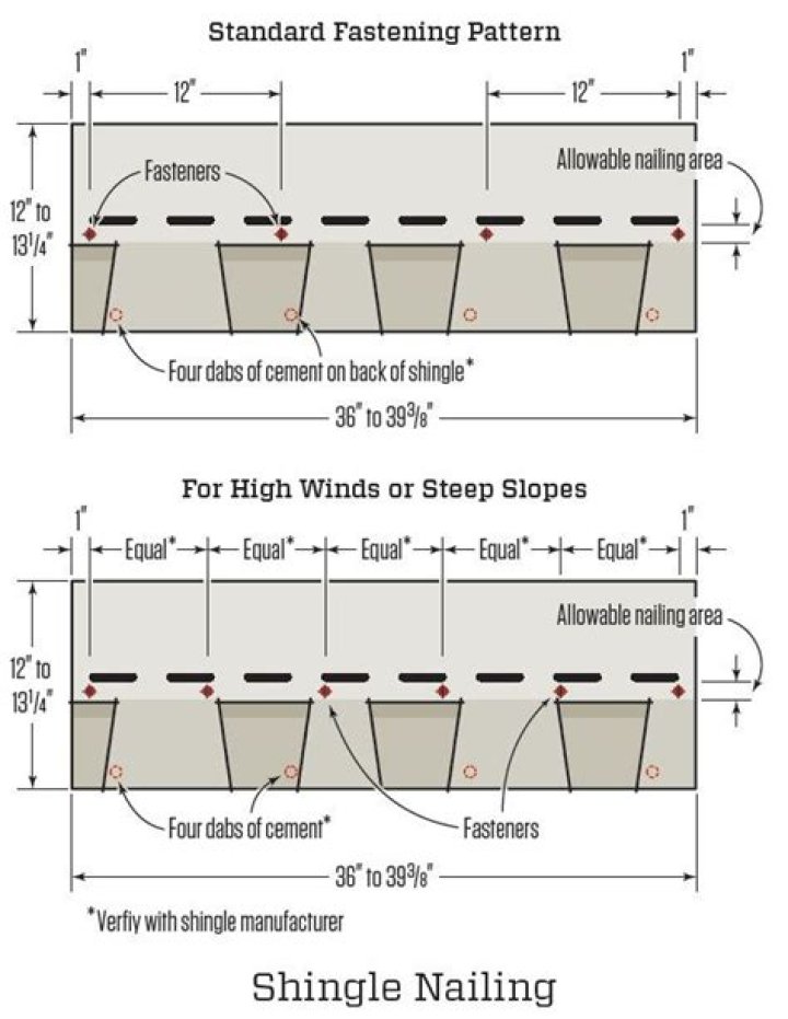 The two most common patterns are the racking pattern and the pyramid pattern. Each pattern has advantages and disadvantages for installation speed and the resulting appearance of the roof. You’ll probably find one pattern or the other will work better on certain styles and pitches of roofs or with different types of shingles.